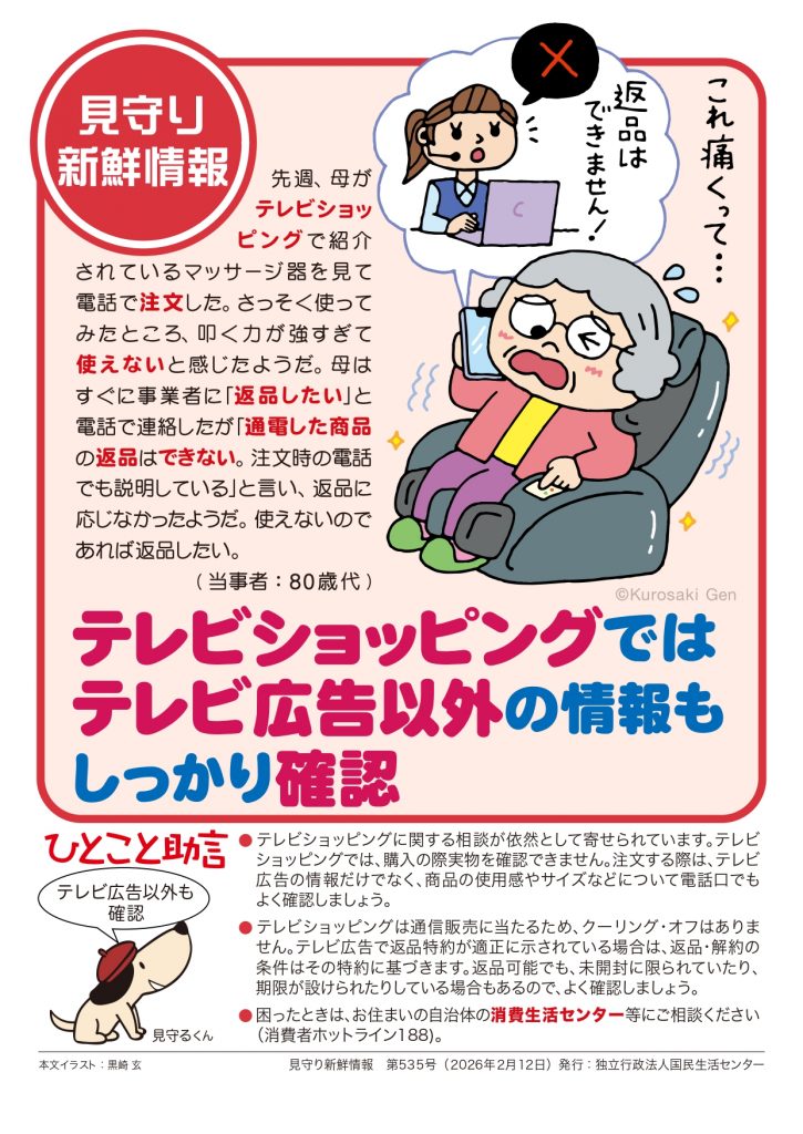 国民生活センターよりテレビショッピングを利用する際の注意喚起がありましたのでお知らせいたします。