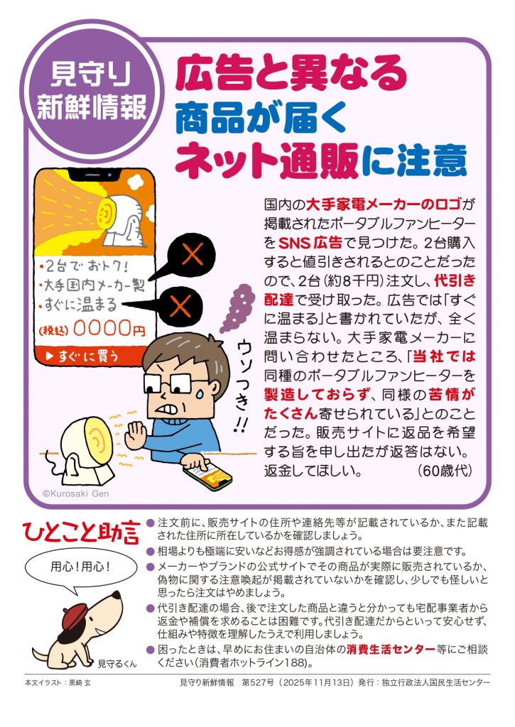 国民生活センターよりネット通販を利用する際の注意喚起がありましたのでお知らせいたします。